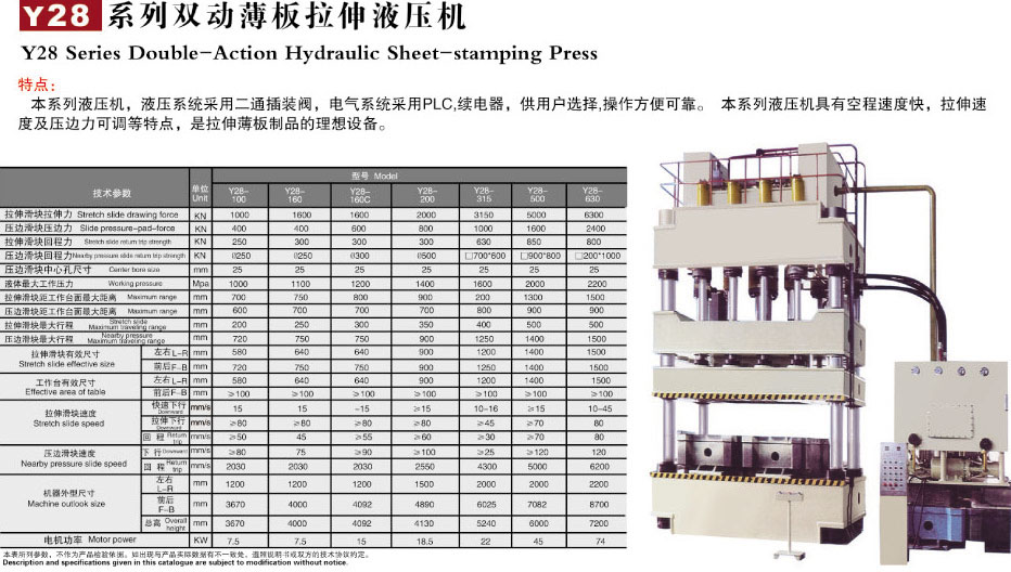 Y28-雙動(dòng)薄板拉伸液壓機(jī)